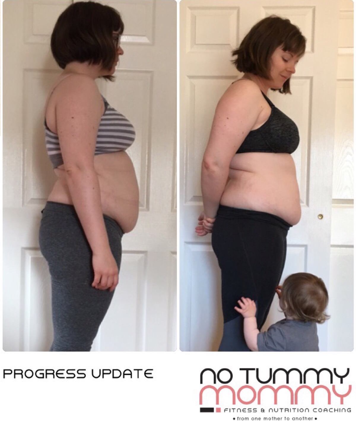 I was so proud of Britt for her hard work and commitment. Following her 30 days with No Tummy Mommy she kept the momentum going and even started seeing a personal trainer to continue on to achieving her fitness goals. This journey is different for everyone and this is truly about PROGRESS! The very most important part of the journey is how you FEEL. I am most happiest when I get feedback from a mother stating she has more energy to run after her kids or that her entire family is now eating better as a result of joining the No Tummy Mommy program.